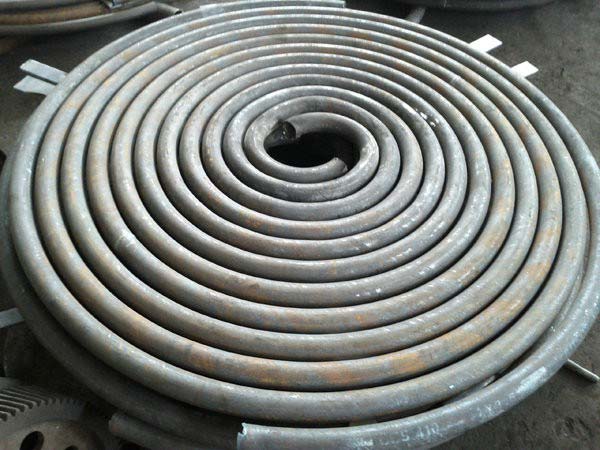 雙螺旋平面盤(pán)管是為了生產(chǎn)過(guò)程中,在同等的換熱面積下增加管內(nèi)液體的流速,簡(jiǎn)短流程,提高換熱效率。